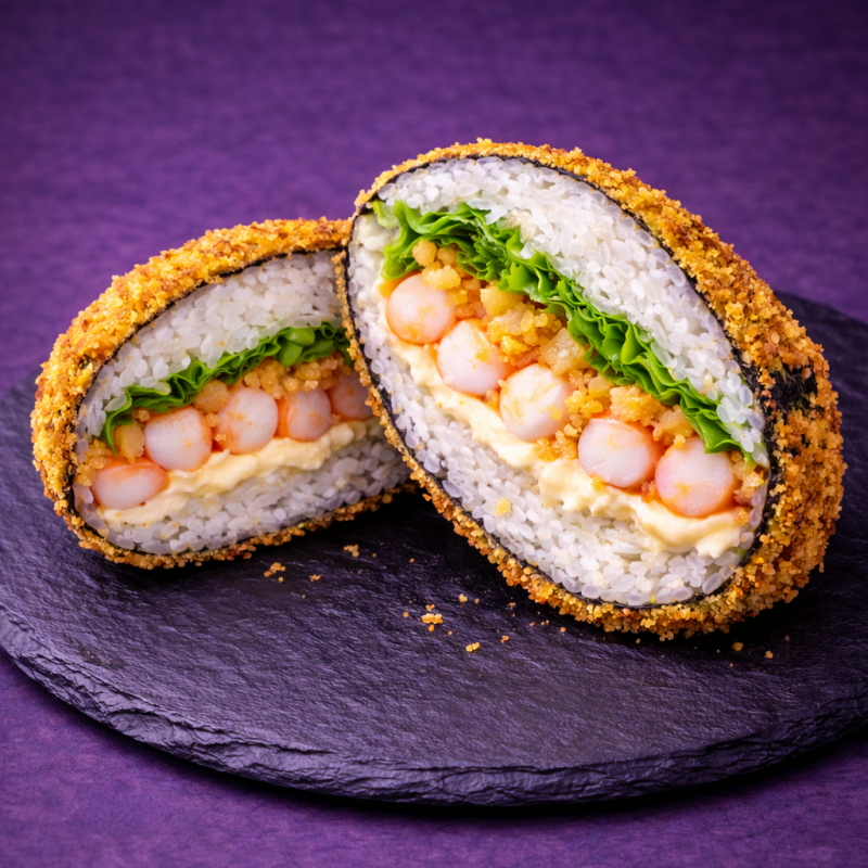 Ryż, nori, serek, krewetka, sałata lodowa