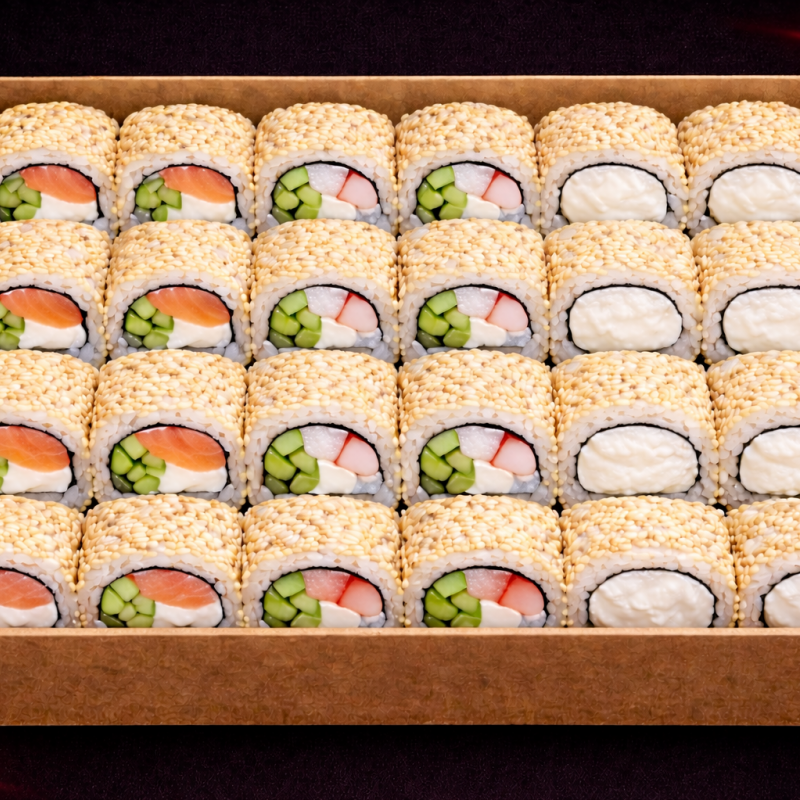 California z surimi w sezamie, California z łososiem w sezamie, California z serem w sezamie
