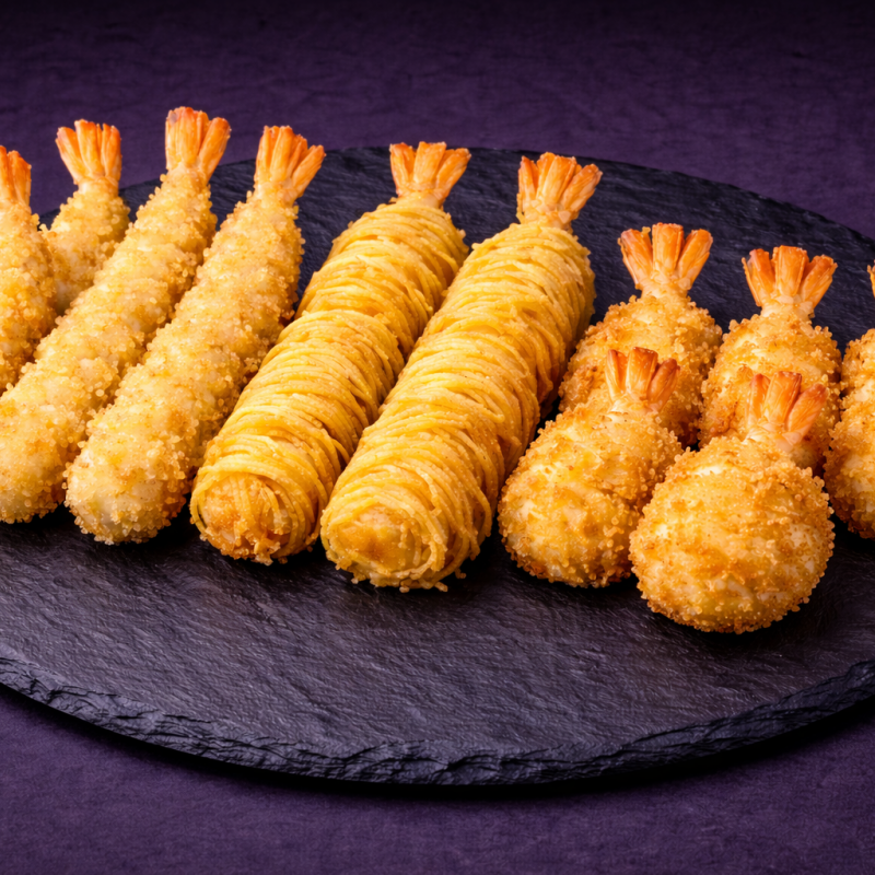 Krewetki w tempurze, Krewetki w ziemniaku, Krewetki motylkowe